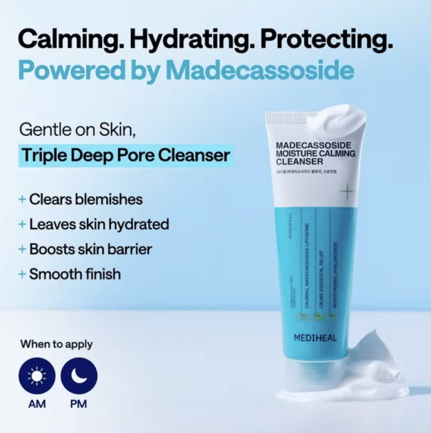 Give your skin a moment of calm with the Mediheal Madecassoside Moisture Calming Cleanser ๐Ÿ’šโ€”a soothing daily cleanser designed for sensitive, stressed, or easily irritated skin. It gently lifts away dirt, oil, and makeup without disrupting your skin barrier, helping your complexion feel clean, comfortable, and refreshed.