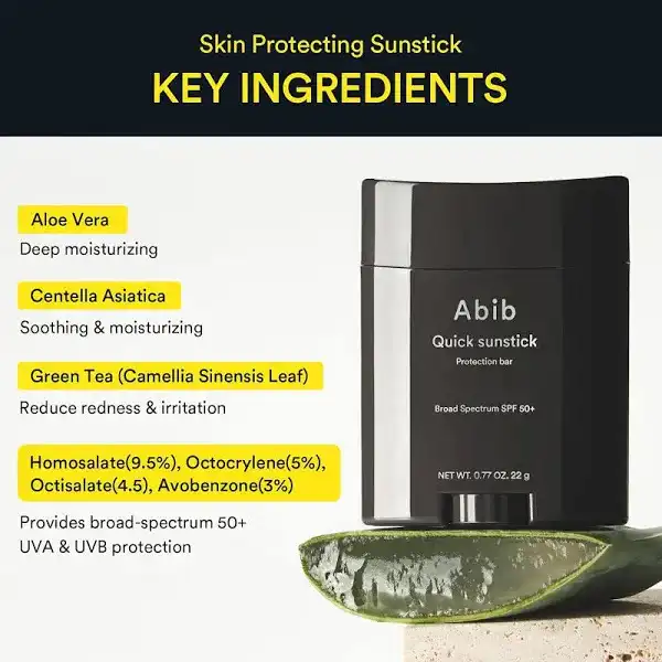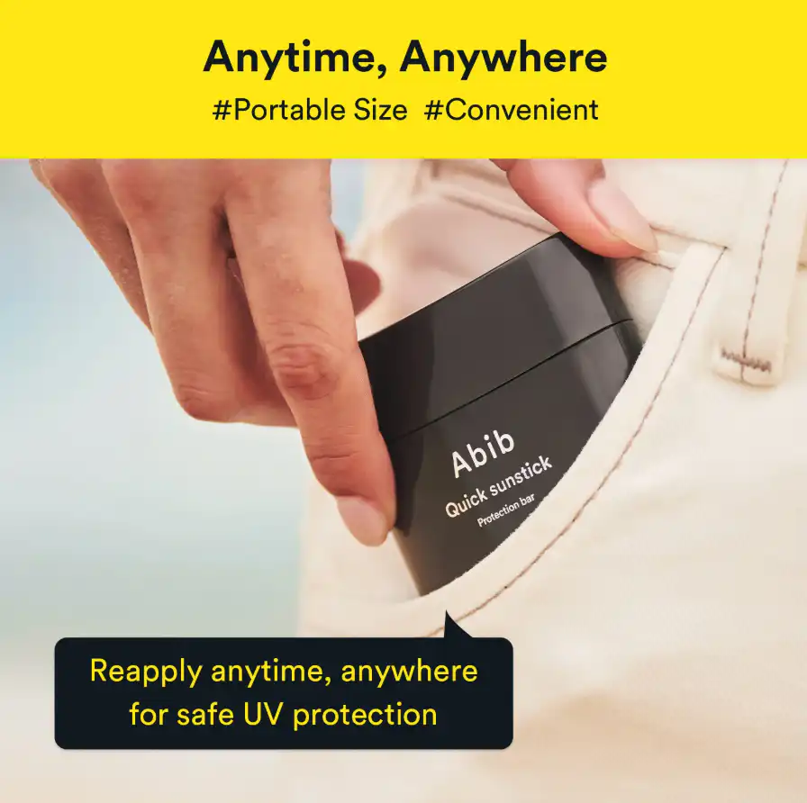 The Abib Quick Sunstick Protection Bar SPF 50+ PA++++ is a Korean sunscreen stick designed for convenient, on-the-go sun protection. With its high SPF rating, it offers broad-spectrum protection against both UVA and UVB rays.