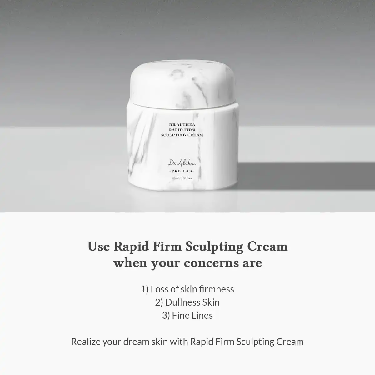The Dr. Althea Rapid Firm Sculpting Cream is a firming, smoothing moisturizer designed to support the look of: