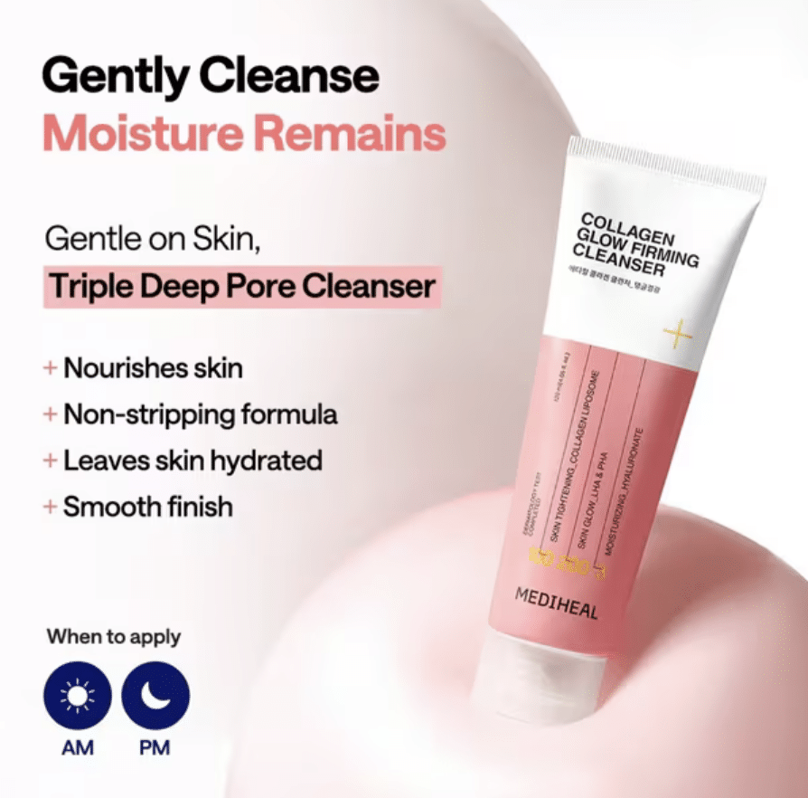 Start and end your day with a glow boost from the Mediheal Collagen Glow Firming Cleanser ๐Ÿ’›โ€”a skin-loving formula designed to cleanse deeply while supporting a firmer, more youthful-looking complexion. Unlike harsh cleansers that strip your skin, this one works gently to lift away dirt, oil, and makeup while nourishing your skin barrier at the same time.